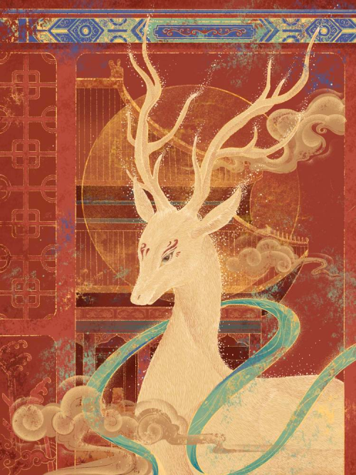 作品灵感来源于敦煌九色神鹿与故宫建筑文化,寻思当中华故宫与敦煌文化邂逅时会有如何画面,也表达对中华文化的致敬与问候